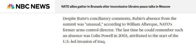 与此同时,北约外长会于3日在布鲁塞尔召开。然而一直积极推进“和平计划”的美国,其国务卿鲁比奥却罕见缺席。