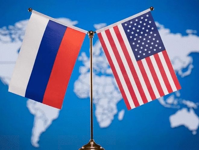 图为美俄国旗
