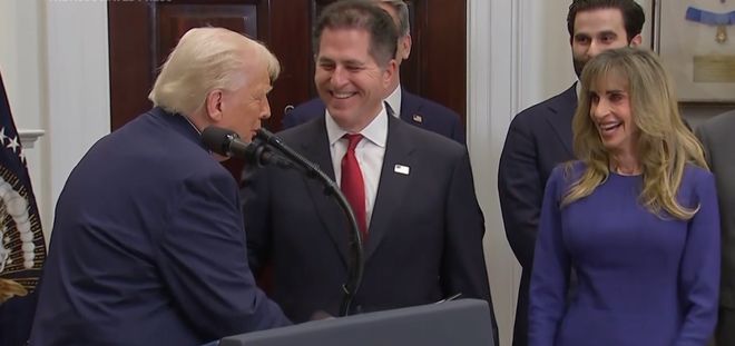 特朗普2日在新闻发布会邀请戴尔夫妇出席,他还与夫妇两人热情握手致意。戴尔夫妇将为“特朗普账户”计划总共捐出62.5亿美元(约合人民币442亿元)。为了填补2025年之前出生的儿童无法享受1000美元“政府捐赠款”的遗憾,戴尔夫妇将为2024年12月31日前出生的10岁以下儿童捐赠250美元,总共将帮助2500万人(按照贫困程度排序)。